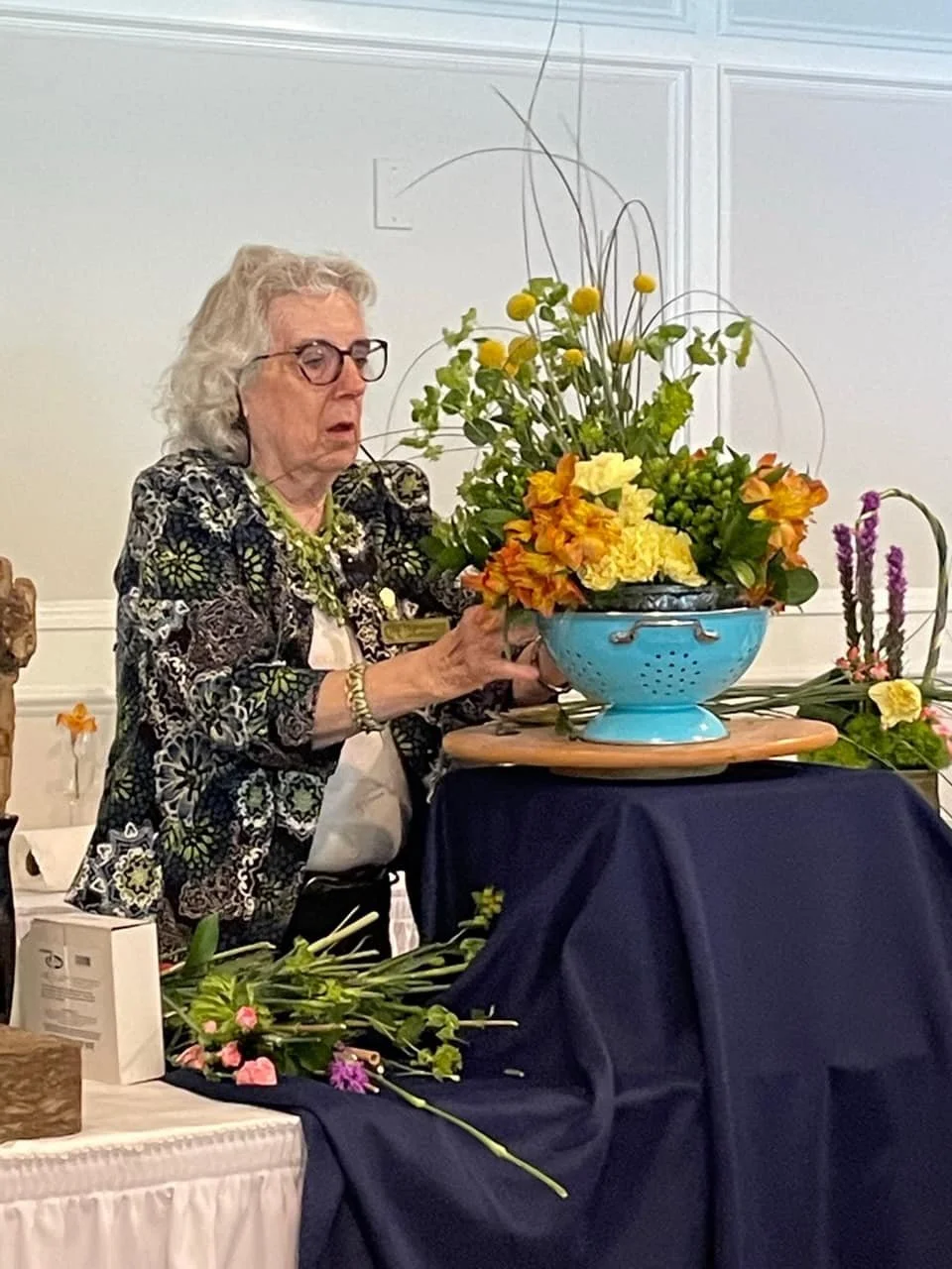 A wonderful mid-summer luncheon at Traveler’s Rest! Trish Manfredi, Master National Garden Club Flower Show judge and Chair of the CT Judges Council demonstrated 5 floral design types.